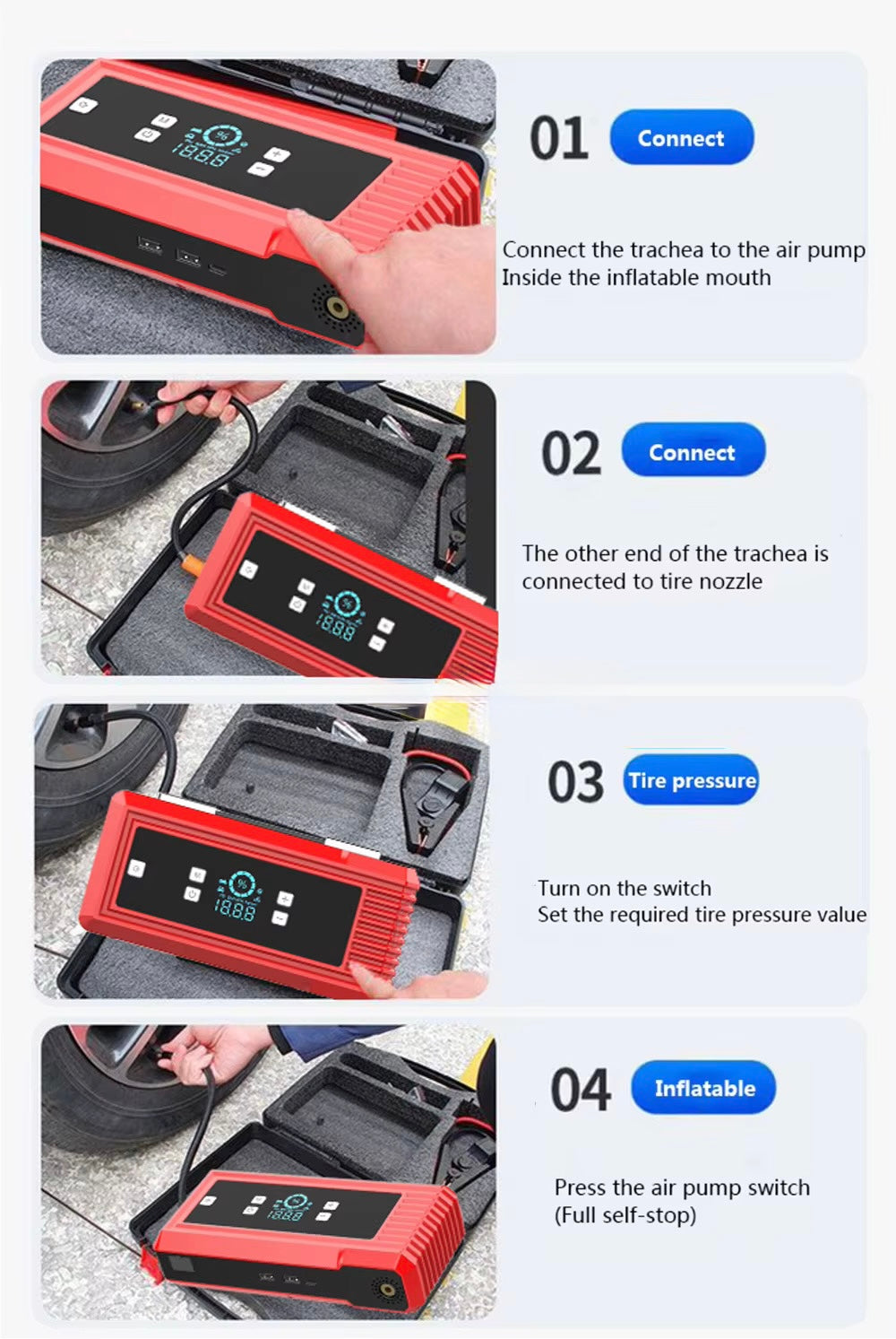 ⚡ The Ultimate Roadside Companion: 4-in-1 Jump Starter & Compressor